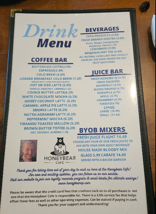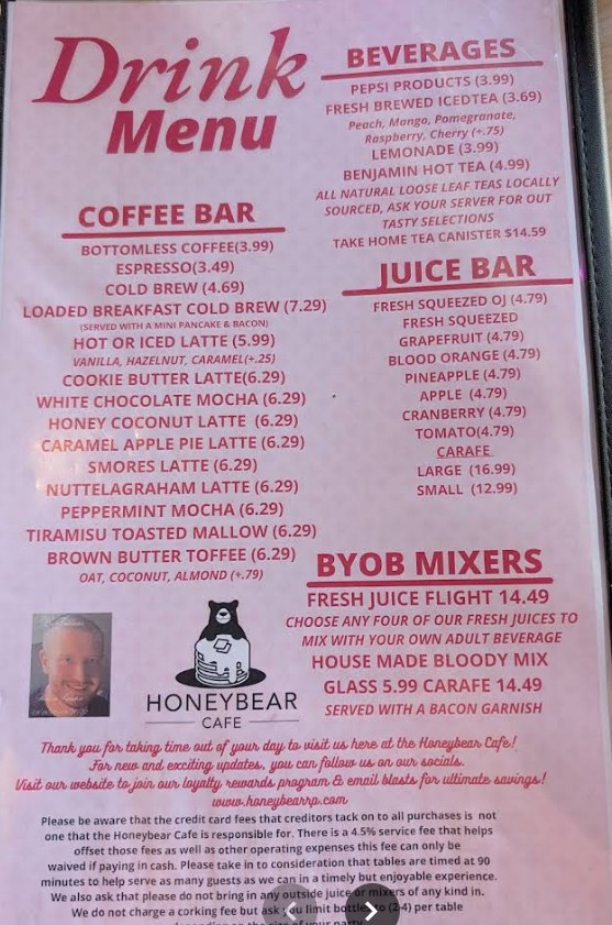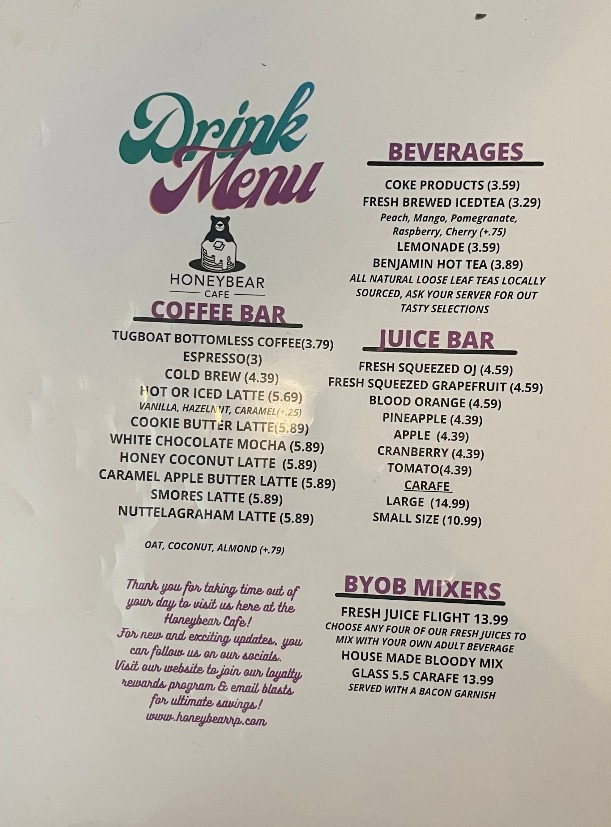 Discover the complete Honeybear Cafe Restaurant menu featuring fresh brunch favorites, hearty comfort food, specialty coffee, and seasonal specials. Located in Chicago, Honeybear Cafe offers a welcoming atmosphere with dine-in, takeout, and convenient reservation options. Whether you're looking for classic breakfast plates, signature brunch dishes, or handcrafted beverages, explore everything Honeybear Cafe Restaurant has to offer in one place.